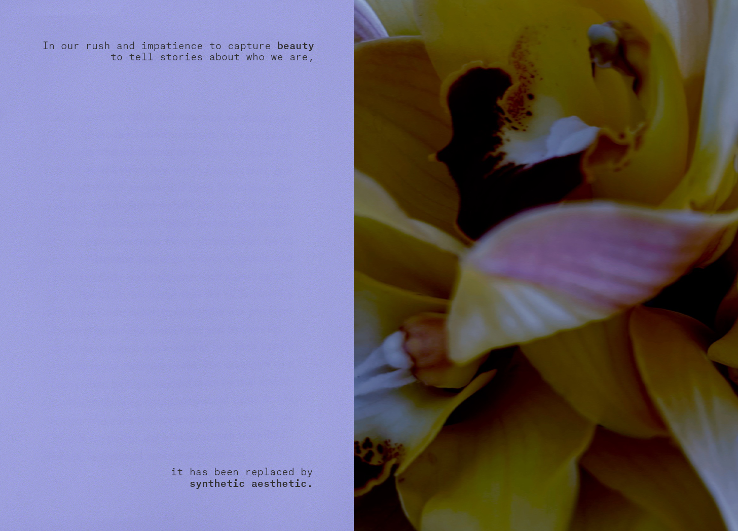 And we can feel the toll of it. Not just in the fatigue and not just in the sameness that’s overtaken every feed, every trend, every magazine, every expression. But also in the deeper ache caused by the constant consumption of aesthetic without essence, finding instead the ghost of depth where something true should be. It’s the dullness in our chest after hours of scrolling and the sting behind the eyes when nothing lands.
